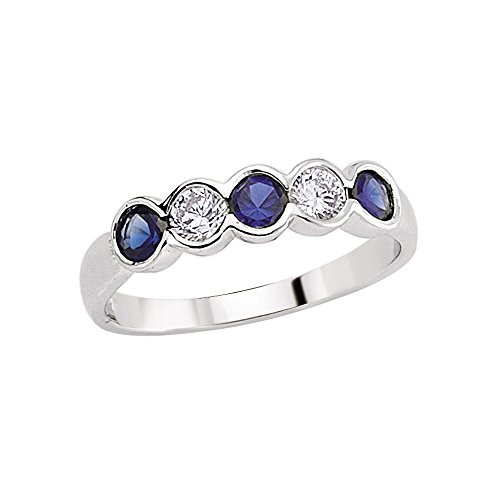 Eternity Rings (aka Infinity Rings) symbolize never-ending love, and make a great gift for a significant wedding anniversary. Jewelco London presents this piece from its latest collection of 925 Sterling Silver Rhodium Plated Jewellery. Rhodium Plated Sterling Silver Blue and White Round Brilliant Cubic Zirconia Alternating Eternity Ring Silver 5 Stone Alternate Cz & Sapphire Round Stone Ring. rubover round brilliant sapphire & white alternated. this ring should not be sized and must be purchased in the correct size . .