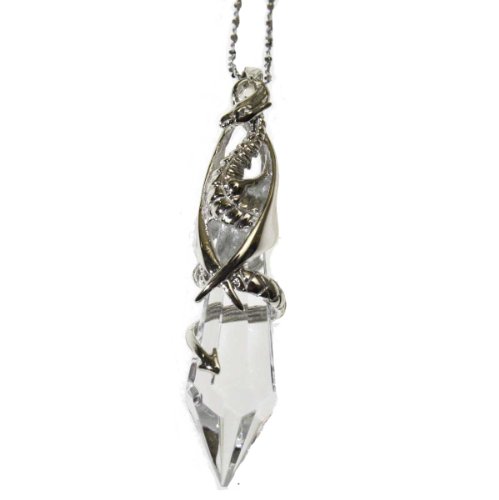 Keeper of the Crystal Anne Stokes' Mythical Companions Sterling Silver 925 Dragon Pendant Necklace with Crystal Pendulum. A precious healing crystal rests firmly in the grasp of the dragon, truly a treasure. The wearer may use this pendant as a pendulum or therapeutic tool, as the dragon symbol protects from unwanted influences. For Healing and Divination. Approximate Dimensions - Pendant 10mm x 50mm on 18 Inch (45cm) Necklace Chain. Designed by Fantasy Artist, Anne Stokes, each Mythical Companion pendant is lovingly crafted in 925 Sterling Silver and comes with a silver chain and presented in a blue satin pouch.