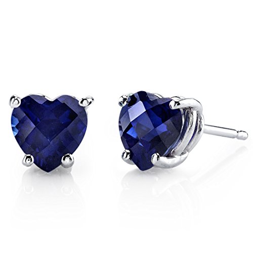 Gemstones: 2 pieces Lab Created Blue Sapphire, Heart Cut, 6 mm, 2.3 carats, Ceylon Blue Hue with Brilliant Sparkle. Earrings: 1.05 grams pure 14ct White Gold. Earrings feature exceptional Design, Craftsmanship and finishing. Perfect gift for Mothers Day, Birthdays, Valentines Day, Graduation, Christmas or just about any other occasion. Money Back Guarantee. Includes a Signature Gift Box. Style PER-E18538