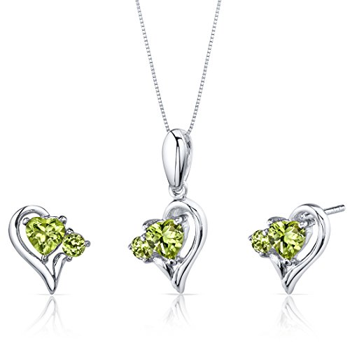 Best Seller! Revoni Love and Beauty 2.25 carats Heart Shape Sterling Silver with Rhodium Finish Peridot Pendant Earrings Set Review
