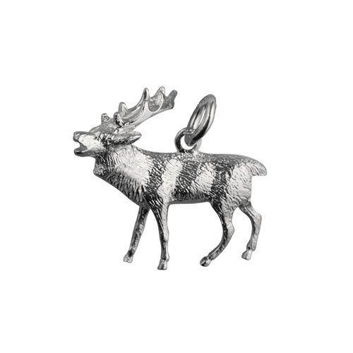 Sterling silver 26x20mm Stag Rutting charm or pendant. Made and hand polished in our Birmingham factory and comes to you carefully prepared in a black leatherette gift box.