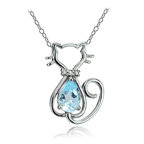 Best Seller! Sterling Silver Blue Topaz & Diamond Accent Filigree Cat Slide Pendant Review