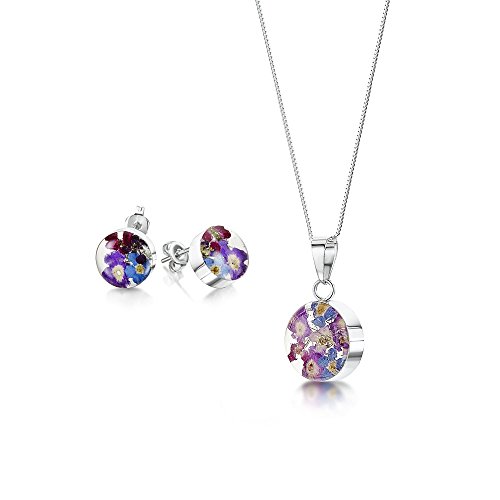 Shrieking Violet offer Sterling Silver Jewelry Set: Real Flower Pendant & Earrings - Forget-Me-Not purple & blue - Round - in giftbox. This awesome product currently limited units, you can buy it now for £49.99, You save -
